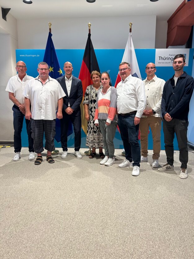 Am 07.08.2025 haben sich die Geschäftsführer der drei Behindertensportfachverbände GSV Thüringen e.V., TBRSV e.V. und Special Olympics mit dem Staatssekretär für Sport und Ehrenamt David Möller in der Staatskanzlei Erfurt getroffen. Themen waren das neu eingeführte Gesetz Ehrenamt sowie die Sicherstellung der jährlichen Finanzierung der drei Verbände.